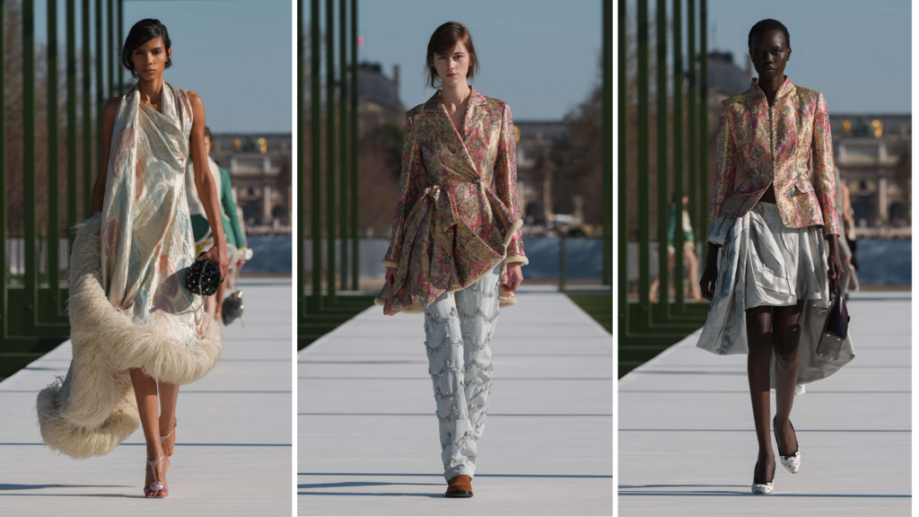 Y eso fue, para mí, lo más interesante: Anderson no imaginó a la mujer Dior encerrada en una fantasía lejana, sino circulando. Caminando. Dejándose ver. Hay algo profundamente parisino en esa decisión, porque el Tuileries siempre fue un lugar ligado al gesto social del paseo, al arte de mirar y ser mirada. La colección se apoya en esa tensión: lo cotidiano elevado a espectáculo, pero sin perder del todo su vínculo con la vida real. No es una fantasía de evasión; es una fantasía que todavía toca el suelo.